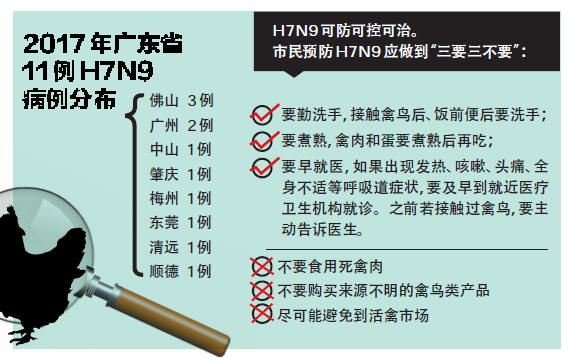 广东省疾控中心传染病预防控制所所长何剑锋介绍,广东省组织卫生、农业、气象等多部门专家分析认为,当前广东省已进入H7N9疫情高发期,2017年H7N9流感发病水平高于2016年,并有可能出现感染其他亚型流感的病例,但仍呈现散发特点,疫情总体可防可控。