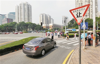 “‘文明交通让行’包含了车辆掉头文明让行、路口文明让行、黄方格区域文明让行、人行横道文明让行、左转车辆文明让行直行车辆、会车文明让行、交替通行文明让行、‘冲绿灯’文明让行、特殊车辆文明让行、辅道文明让行主干道等十类,预计将在6月中旬左右推行。”深圳市交警局指挥处勤务科副科长薛伟告诉深晚记者,在行动实施后,如果车主不遵守“文明交通让行”规定,深圳市交警局将按照相关法规进行处罚。