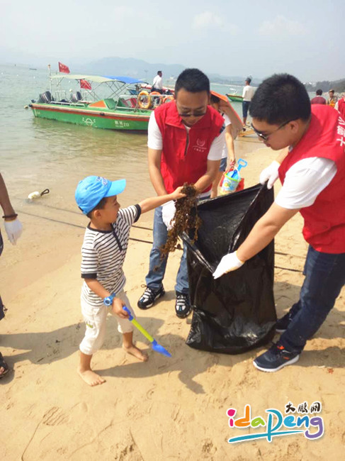 随着旅游旺季的到来,海滩是旅游度假的热门好去处,游客数量的增加导致海滩垃圾增多,景区清洁工短时间内也清扫不过来,严重地影响了景区风貌以及游客的旅游感官。大鹏办事处义工率先示范,一到节假日就穿上“红马甲”,带上垃圾夹和垃圾袋,在游客较多的海滩清捡垃圾并邀请游客当一次“海滩清扫卫士”的亲身体验。通过义工的示范引导和游客的亲身体验,宣传文明旅游理念,同时,游客深刻意识到垃圾对环境的“伤害” 。