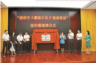 6月23日下午,大鹏新区医疗健康集团签约暨揭牌仪式在大鹏新区举行。市公立医院管理中心和大鹏新区管委会共同签订了创办医疗健康集团合作协议。