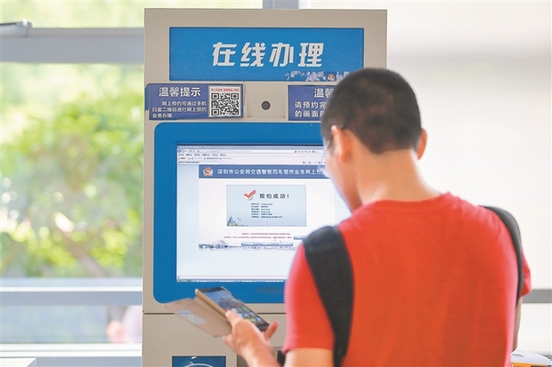 市民使用自助机器办理车管业务。