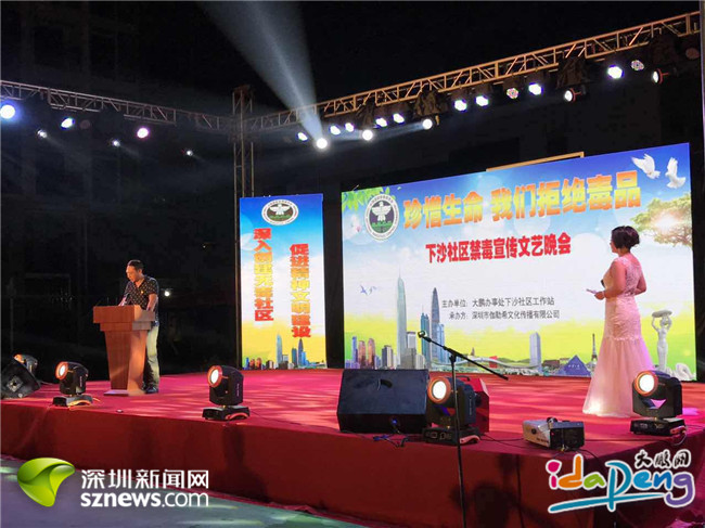 大鹏讯(通讯员 廖欣 )8月1日晚,大鹏新区禁毒文艺演出在下沙社区篮球场举行,此次活动由大鹏新区禁毒办、大鹏分局刑警大队、大鹏办事处综治办牵头,下沙社区工作站主办,春暖驻大鹏新区禁毒社工协助开展。