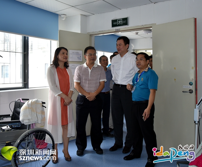 随后,廖远飞一行来到大鹏敬老院,详细询问了大鹏敬老院的基本情况及老人的生活起居和服务情况。据了解,目前新区有3家敬老院,分布在葵涌、大鹏、南澳3个办事处。3家敬老院总占地面积约19000平方米,平均每家约6333平方米。廖远飞充分肯定了大鹏新区在推进“医养结合”等方面所取得的成绩,他希望新区能积极探索、不断创新,为全市提供更多可推广的经验。