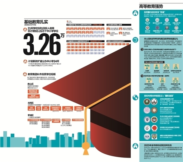 金秋9月,深圳新增中小学新校21所,合计增加3.26万个中小学学位;深圳技术大学(筹)首次依托深圳大学应用类专业(二本)招收226名新生,迅速补齐了深圳高等教育技术人才培养的短板……