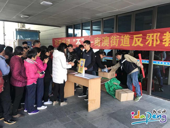大鹏讯(通讯员 钟俊有 朱世光)12月19日下午,南澳办事处在南澳三南文体中心1楼开展了对邪教说“不”宣传活动,吸引了120余名群众参加,反响热烈,现场发放反邪教宣传折页100余份,发放宣传品100余袋,并就发邪教相关知识为群众答疑解惑。参加活动的群众现场领取宣传单后认真阅读,进一步了解了邪教的危害,对“什么是邪教”、“如何识别邪教”、“如何防范邪教”有了更加深入的认识,并表示会更加注意身边的人和事,发现有邪教迹象的可疑人员要立刻上报给相关部门。