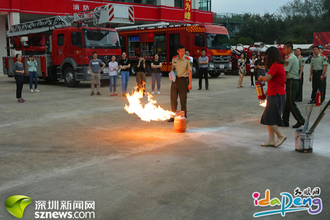 大鹏湾特勤一中队消防战士为大鹏新区中心医院的医务工作者展示消防设备