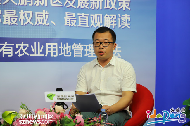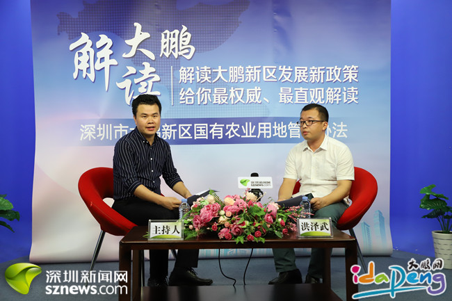 5月23日,大鹏海洋生物产业服务中心负责人洪泽武走进深圳新闻网在线访谈室,做客由大鹏新区综合办公室与深圳新闻网联合开展的“解读大鹏”系列访谈节目,为网友详细解读《深圳市大鹏新区国有农业用地管理办法》(以下简称《办法》)。