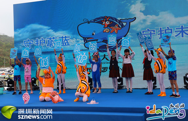 由“海洋大学堂”和罗芳小学联合上演的儿童环保舞台剧《大海的笑容》