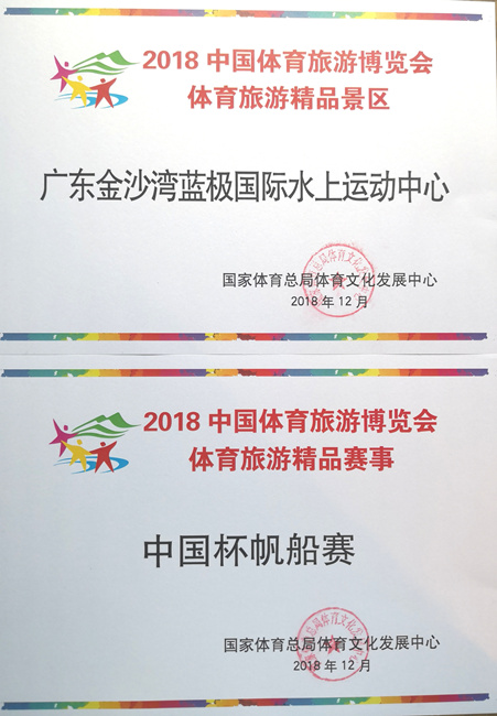 落户于大鹏新区的金沙湾蓝极国际水上运动中心入选2018中国体育旅游博览会体育旅游精品景区,中国杯帆船赛入选为本届体育旅游精品赛事。