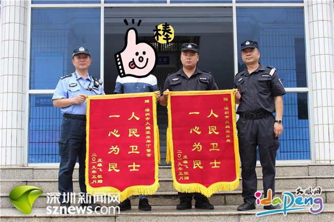 深圳新闻网5月27日讯(记者 李小辉 通讯员 廖欣)“感谢大鹏公安,感谢丁警官,让我在绝境中看到了希望”。5月26日上午一大早,家住龙岗的庞先生特意赶到大鹏派出所,亲手将锦旗送到大鹏派出所民警丁有明手中,一再表示对大鹏公安的感激之情。