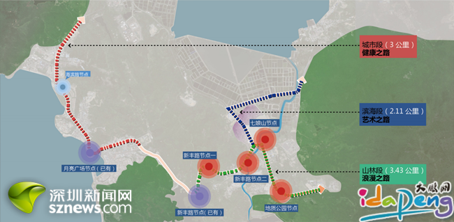 大鹏新区建筑工务署将为市民提供一条安全、优美、舒适的绿色低出行的景观长廊,总体功能以休闲、旅游观光、户外健身体验为主。