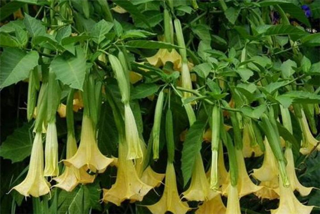 曼陀罗又叫曼荼罗、满达、曼扎、曼达、醉心花、狗核桃、洋金花、枫茄花、万桃花、闹羊花、大喇叭花、山茄子。常生于荒地、旱地、宅旁、向阳山坡、林缘、草地。喜温暖、向阳及排水良好的砂质壤土。曼陀罗全草有毒,以果实特别是种子毒性最大,嫩叶次之,干叶的毒性比鲜叶小,主要毒性成分是莨菪碱、阿托品及东莨菪碱(曼陀罗提取物)等生物碱,它们都是一种毒蕈碱阻滞剂,竞争毒蕈碱受体,打断副交感神经的支配作用。