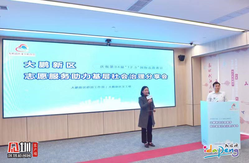 12月5日是第34届国际志愿者日,新区群团工作部、新区义工联在新区党群服务中心联合举办大鹏新区志愿服务助力基层社会治理分享会,近百名志愿者代表现场见证。