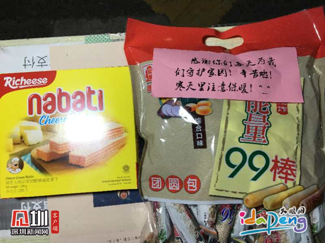 2月18日晚上,一辆奔驰车停在欧新担水南卡点,车上下来一名女士,放下一大包零食,说了句“辛苦了”转身就走了……零食上还贴着一张便条:“感谢你们每天为我们守护家园!辛苦啦!寒天里注意保暖!”