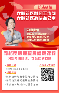 开展“舒心”直播:持续深化“群团伴你疫路舒心”心理服务工作,对舒心减压微课堂提质升级,链接资深心理团队为新区网格员队伍开展4期线上心理疏导互动减压直播课,缓解一线抗疫工作人员心理焦虑。