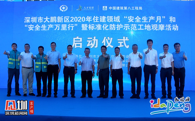 大鹏新区住建领域2020年“安全生产月”和“安全生产万里行”活动启动仪式暨示范工地观摩活动在大鹏中心区08-13地块人才住房项目举行。