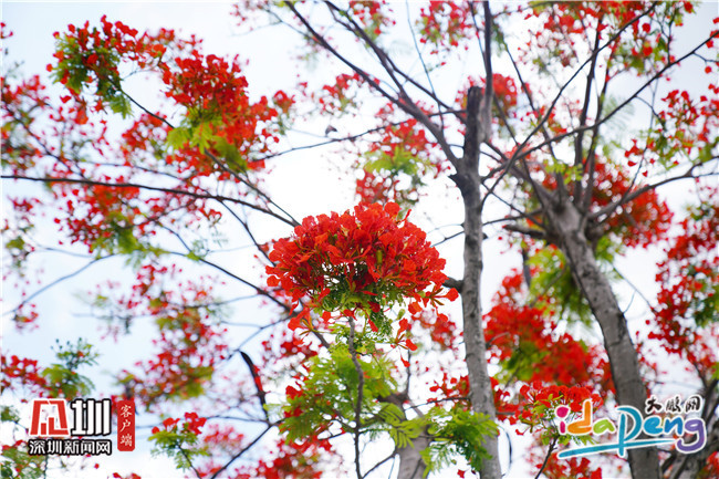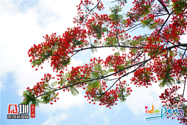见圳客户端·深圳新闻网5月13日讯(见圳客户端、深圳新闻网记者 谢雨婷 林宏松 通讯员 关世邦)凤凰花开,红艳似火。近日来,坝光片区的凤凰花已开得如火如荼,火焰般美丽的花朵挂满枝头,点缀着5月的艳阳天。