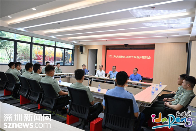 仪式结束后,大鹏新区退役军人事务局邀请退役士兵在退役军人服务中心会议室开展座谈会。详细了解退役士兵在部队的成长历程和学习经验,了解退役士兵复学就业等情况。