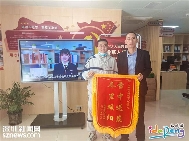 11月12日,退役军人钟某来到大鹏新区退役军人服务中心,为新区退役军人事务局送上“冬日暖阳,雪中送炭”锦旗。