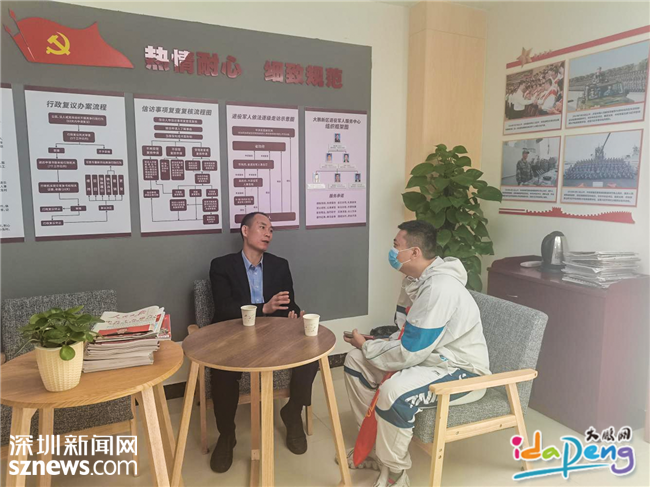 新区退役军人服务中心负责人与退役军人钟某亲切交谈
