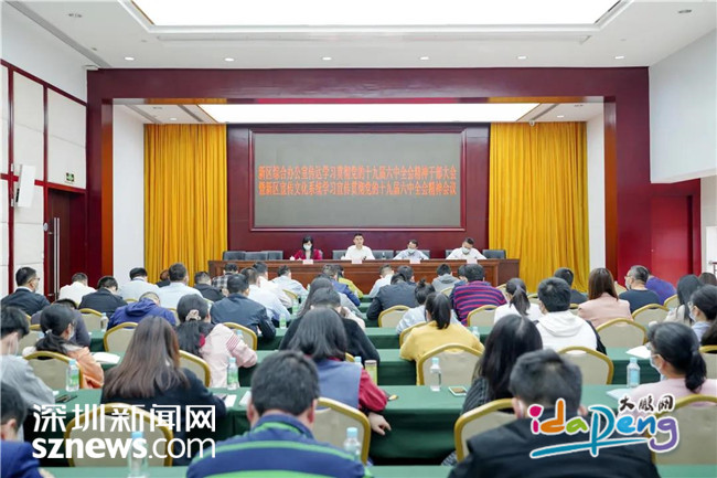 11月17日上午,大鹏新区综合办公室召开传达学习贯彻党的十九届六中全会精神干部大会暨新区宣传文化系统学习宣传贯彻党的十九届六中全会精神会议。