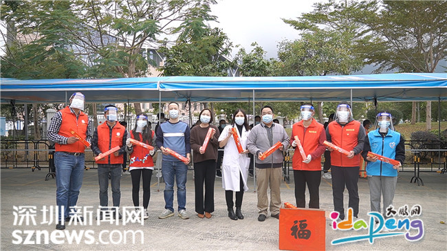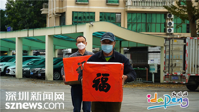 当日,大鹏办事处工作人员来到辖区七个社区、文体公园核酸检测点,把墨香扑鼻、满含心意的春联和福字送到工作人员手中,传递对抗疫一线工作人员的美好祝福,同时鼓励大家坚守岗位同心抗疫。