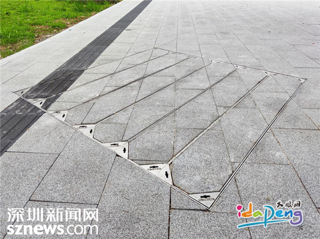 为解决道路范围内窨井盖管养难题,该路段慢行系统全部采用不锈钢下沉式隐形井盖。在项目实施过程中,根据人行道标高对沿线检查井井座进行调低调平,并统一采用隐形井盖,彻底消除井框差和井盖“跷跷板”等问题。隐形井盖的边框镂空刻有“电力”“通信”等产权单位字样,在保持样式统一的同时也方便辨认和检修。井盖表面面砖铺装更是经过细致裁切和拼接,与人行道无缝衔接、完美融合,从此告别井盖高差颠簸和异响,让井盖开启“隐身静音模式”,通行舒适性大大提高。