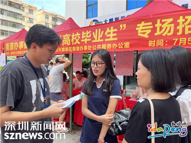 深圳新闻网2023年7月12日讯(记者 谢小蕾 通讯员 袁文怡 曾浩文)“活动现场了解到了很多针对高校毕业生的就业扶持政策,非常开心找到了心仪的工作,这场招聘会对我来说非常及时!”近日,在南澳文体中心的招聘会现场,来自惠州城市职业学院的应届毕业生张宇豪兴奋地说道。
