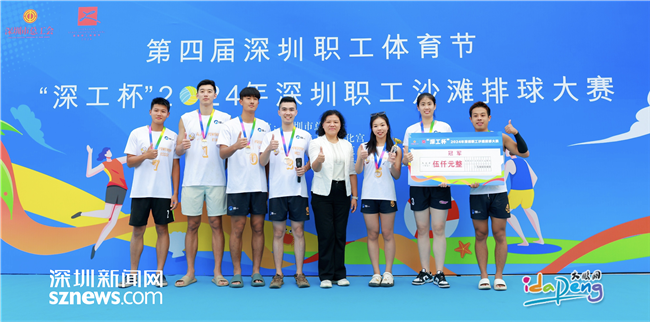 经过一天的激烈比拼,来自龙岗区总工会代表队的飞天小警队荣获“深工杯”2024年深圳职工沙滩排球大赛冠军。