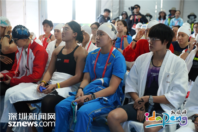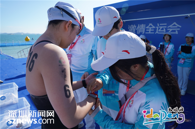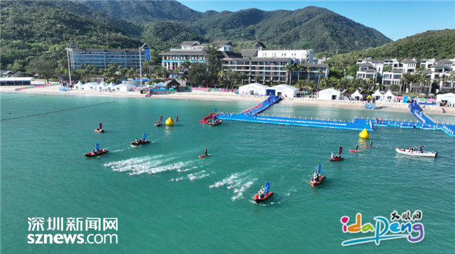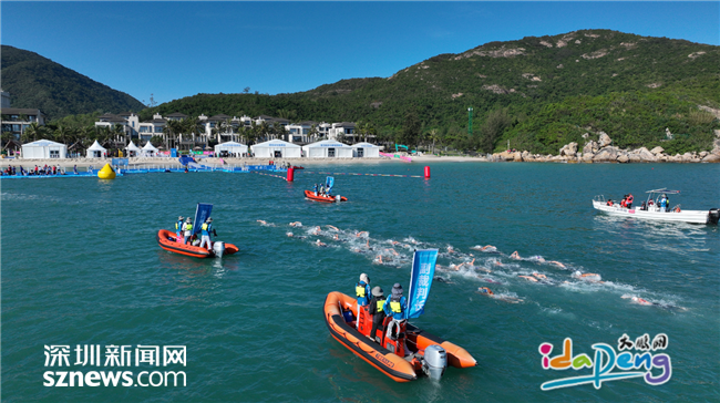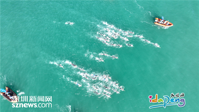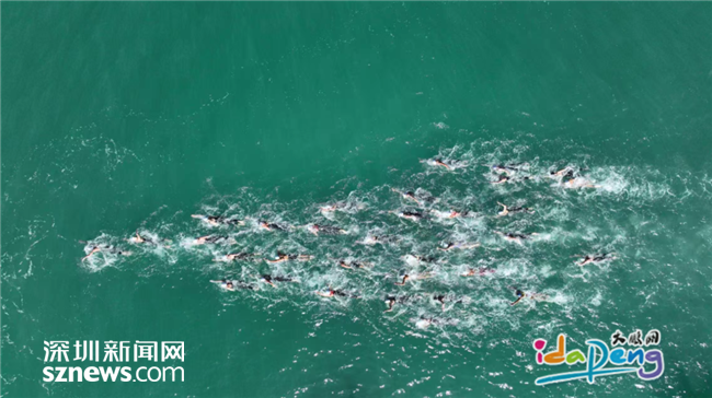 今天的深圳大鹏桔钓沙浪花与运动健儿共舞!十五运会女子马拉松游泳决赛在此举行。