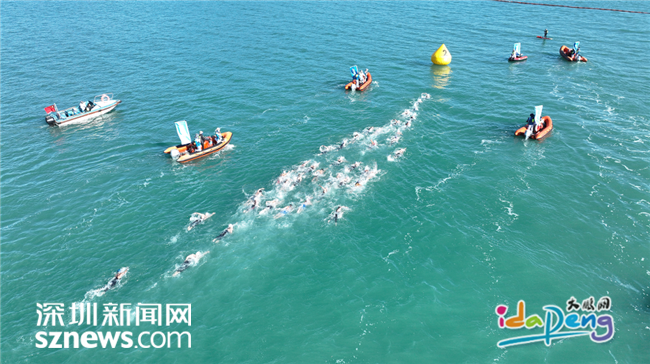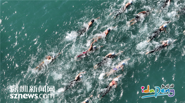 今天的深圳大鹏新区桔钓沙见证了十五运会的重要一刻,女子马拉松游泳决赛项目在此举行。