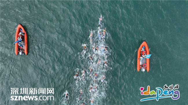 全运会史上首次真实海况下的男子马拉松游泳决赛在深圳大鹏新区桔钓沙海域开赛。