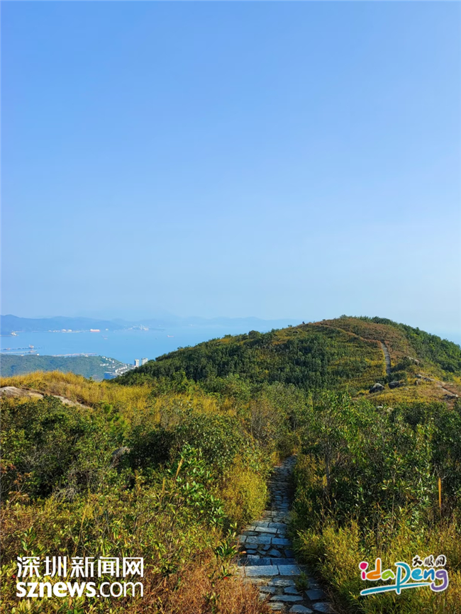 从洞背牌坊出发,路过“最美山海校园”人大附中深圳学校,沿途溪水潺潺、野果满枝,登顶后可俯瞰海天一色,最后沿海岸公路返程,全程充满山海野趣。