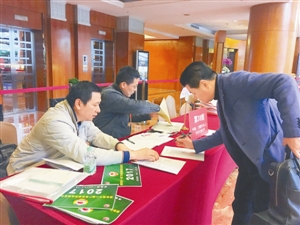 昨天下午,省政协委员报到并领取资料。