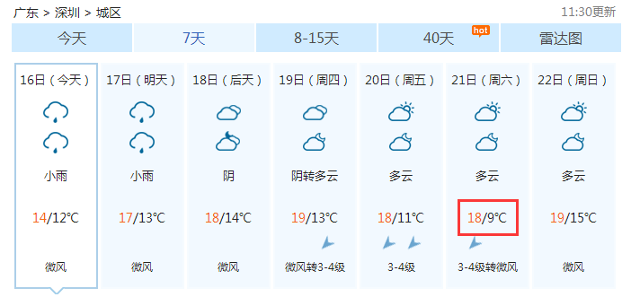 深圳还是维持较低的温度喔