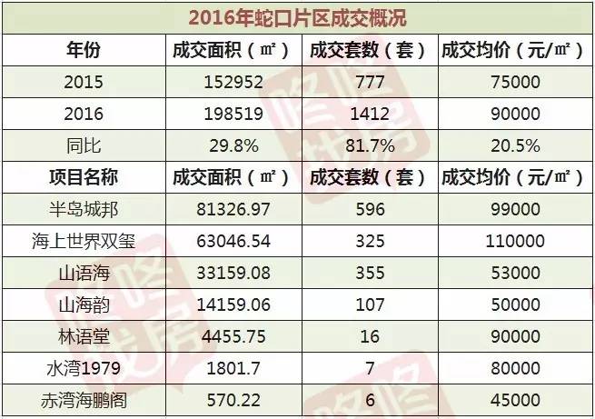 蛇口片区的利好不断,自贸区、蛇口邮轮中心启用,片区的房价更是逐渐攀升。2016年蛇口片区新增入市的项目有:半岛城邦三期、山语海。大户型高端豪宅项目海上世界双玺和半岛城邦三期是片区的量价主要贡献者。片区内的7个项目共成交198519平方米,同比增加29.8%;成交1412套,同比增加81.7%;成交均价90000元/平方米,同比上涨20.5%。