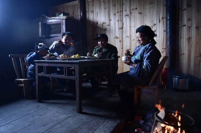 一家人围坐一起吃团圆饭,石欣终于吃到了他想念了很久的腊肉。