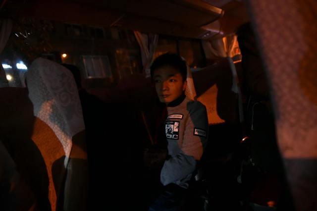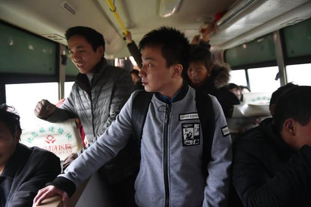 石欣在从湖南吉首回麻栗场镇的大巴上。