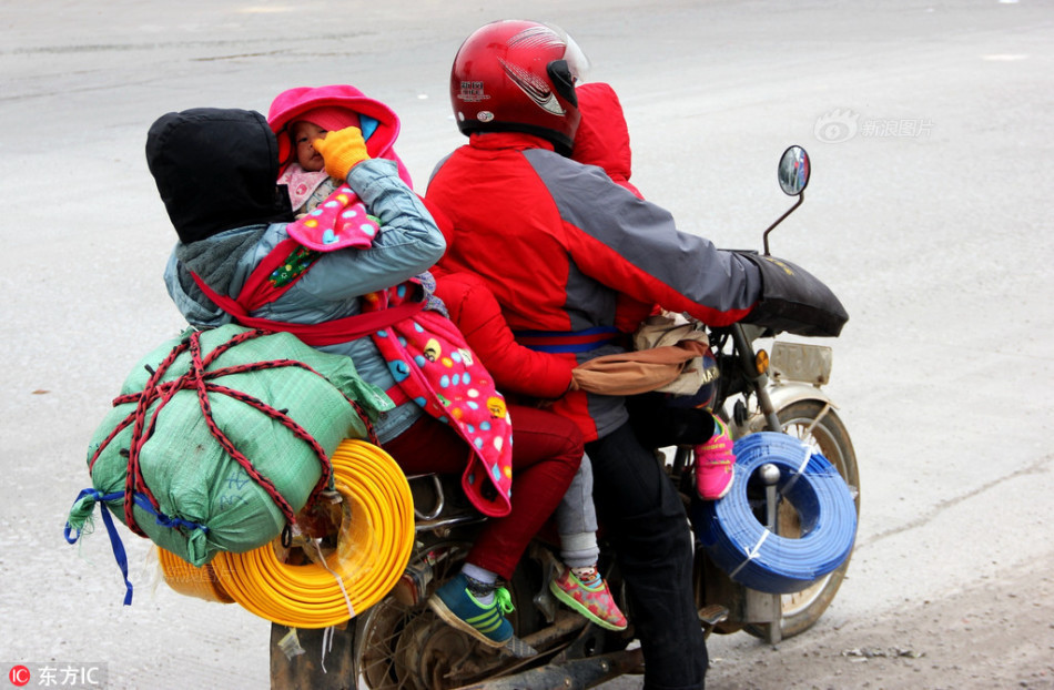 坐油箱绑腰间 铁骑大军春运路上惊险带娃