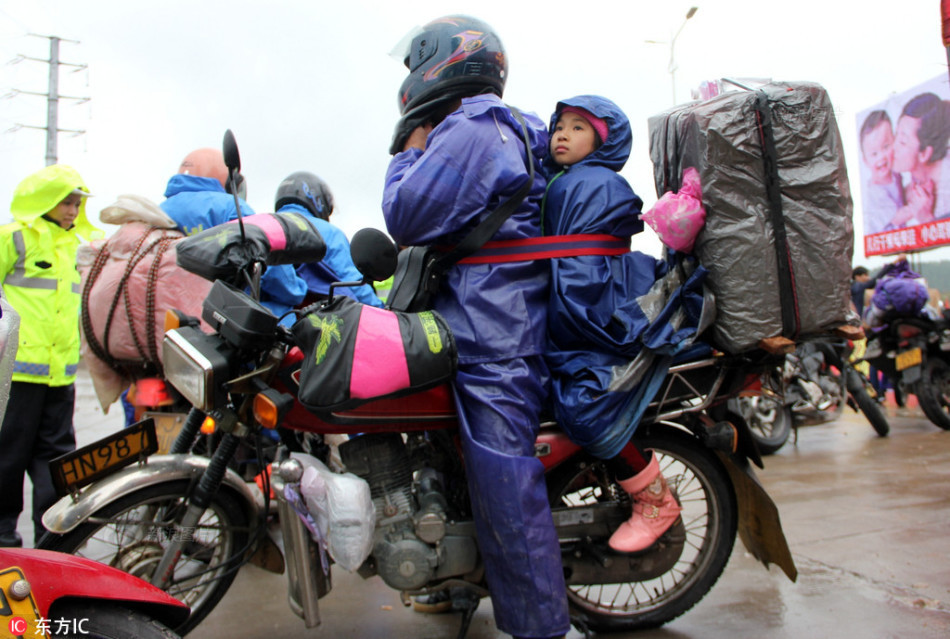 坐油箱绑腰间 铁骑大军春运路上惊险带娃