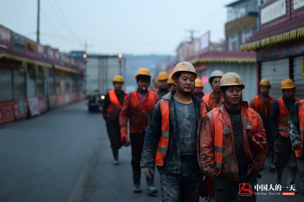 早晨6点40分,天还没亮,早班队伍就出发了。