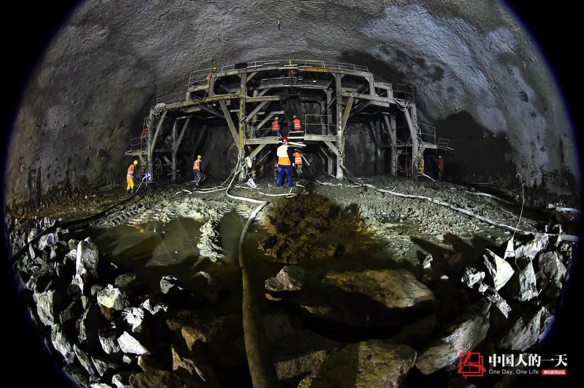 进场班前会、整理工具、穿戴好防护措施,7点30分,钻孔工人们进入了作业面--地下28米的工作平台。尽管还在施工阶段,但隧道已经经过了涂浆处理,不用担心会有碎石掉落。