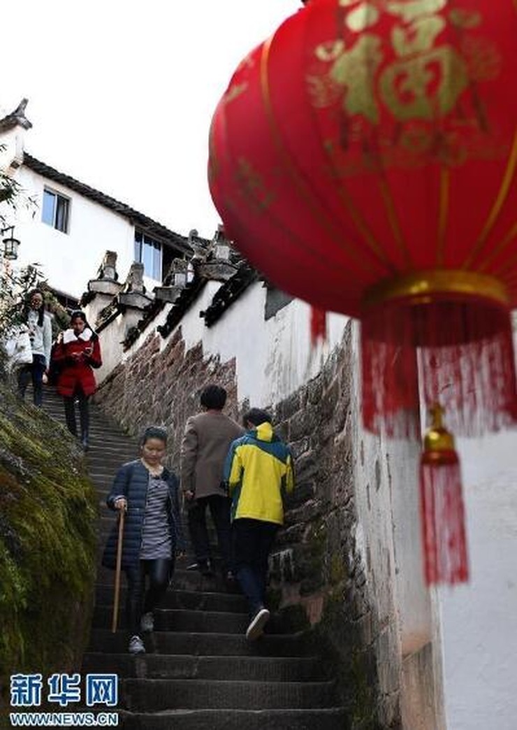 游客在休宁县齐云山镇齐云山村民组的“天街”游览