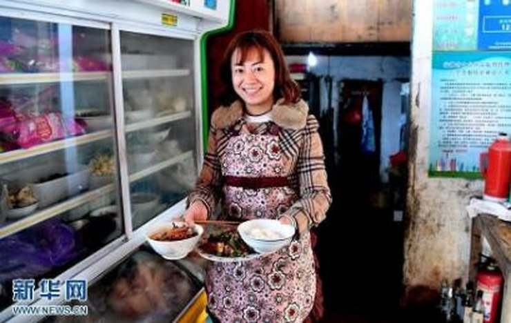 经营农家乐的休宁县齐云山镇齐云山村民组村民庆宁凌招待完游客,准备用餐。