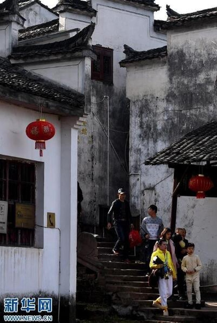 这是建在峭壁上的休宁县齐云山镇齐云山村民组全貌。位于安徽休宁县的齐云山是道教名山,海拔585米,在半山腰的齐云山镇齐云山村民组有一条街道叫月华街,因半悬峭壁之上,被称为“天街”。
