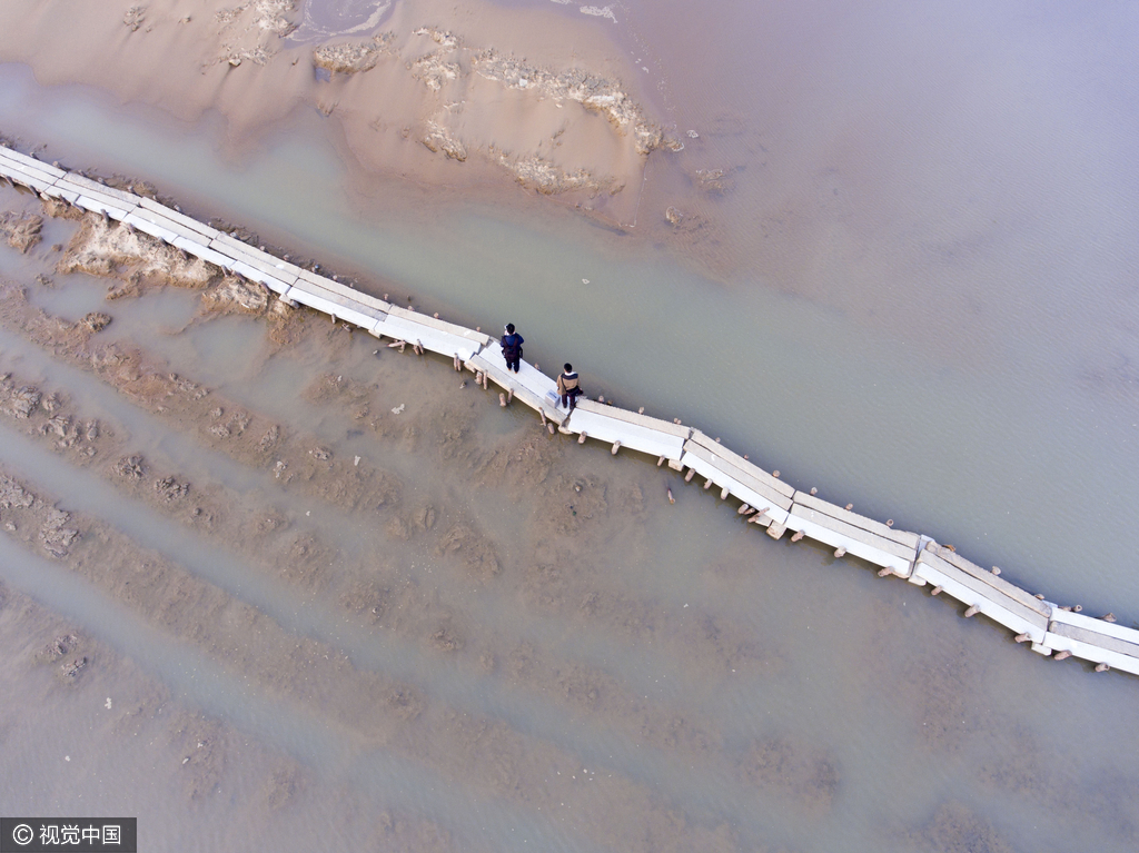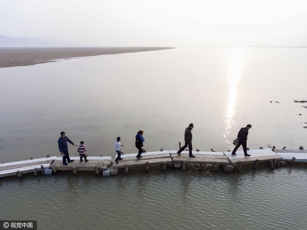2017年2月18日,江西九江。近日,江西省重点保护文物——江西鄱阳湖“千眼桥”完成历史首次大修,正式对游客开放。供图:傅建斌/视觉中国