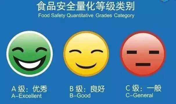 大笑、微笑、平脸代表着不同的食品安全等级,