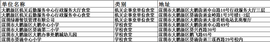 大鹏新区大鹏新区新增的A级餐厅有7家,其中机关单位食堂3家,学校食堂4家。