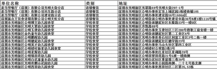 光明新区光明新区新增的A级餐厅有17家,其中连锁餐饮4家,学校食堂13家。