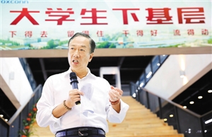 昨日,“大学生下基层”富士康大学生就业座谈会在富士康龙华园区举行,富士康将招募12000名大学生。图为郭台铭喊话大学生:“实体经济大有可为”。深圳商报记者林晓斌 摄